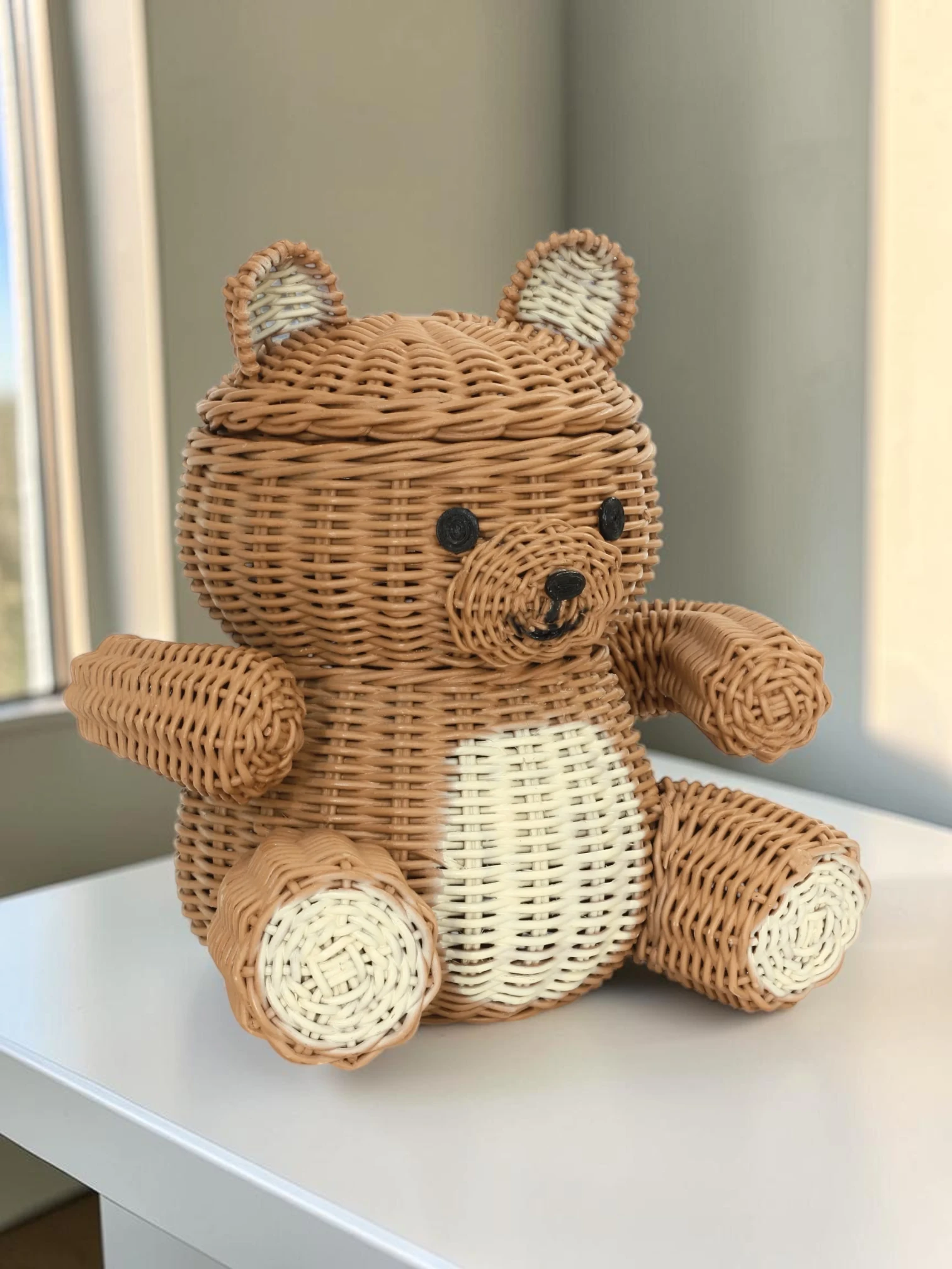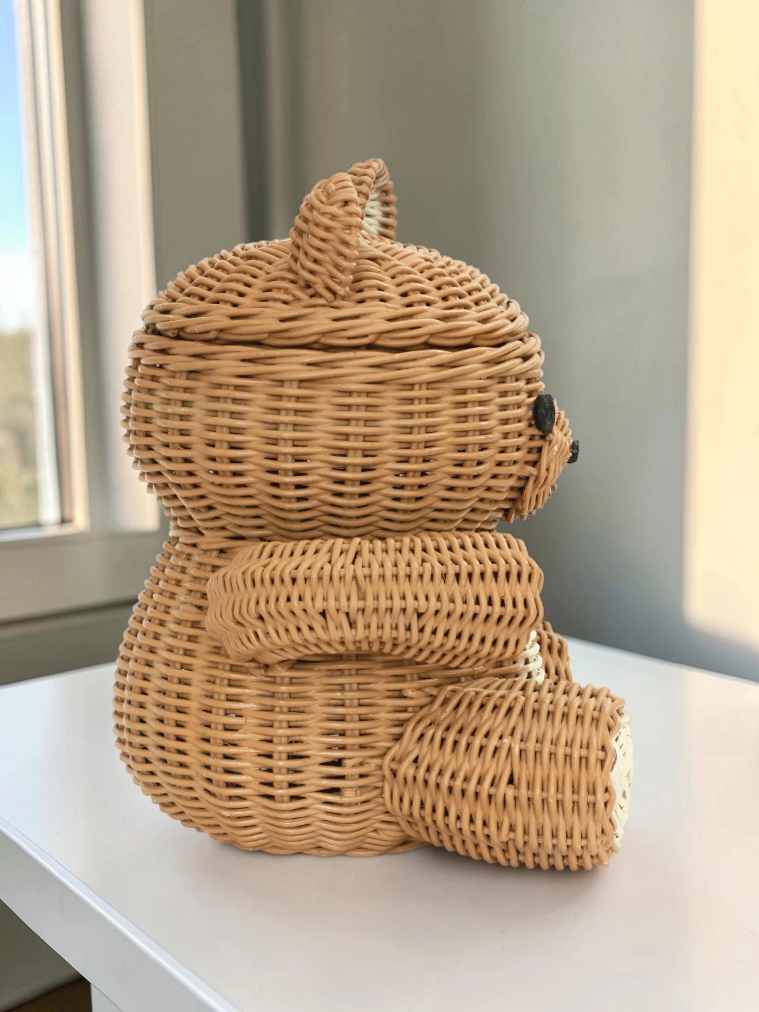 Transform your clutter into a charming display with our handcrafted Bear Rattan Storage Basket. Designed to blend whimsical aesthetics with everyday utility, this bear-shaped organizer is the perfect companion for keeping your nursery essentials, beauty products, or small trinkets neatly tucked away yet easily accessible.We understand that quality is in…