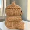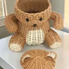 Artisan Wood Decor Cute Bear Rattan Storage Basket