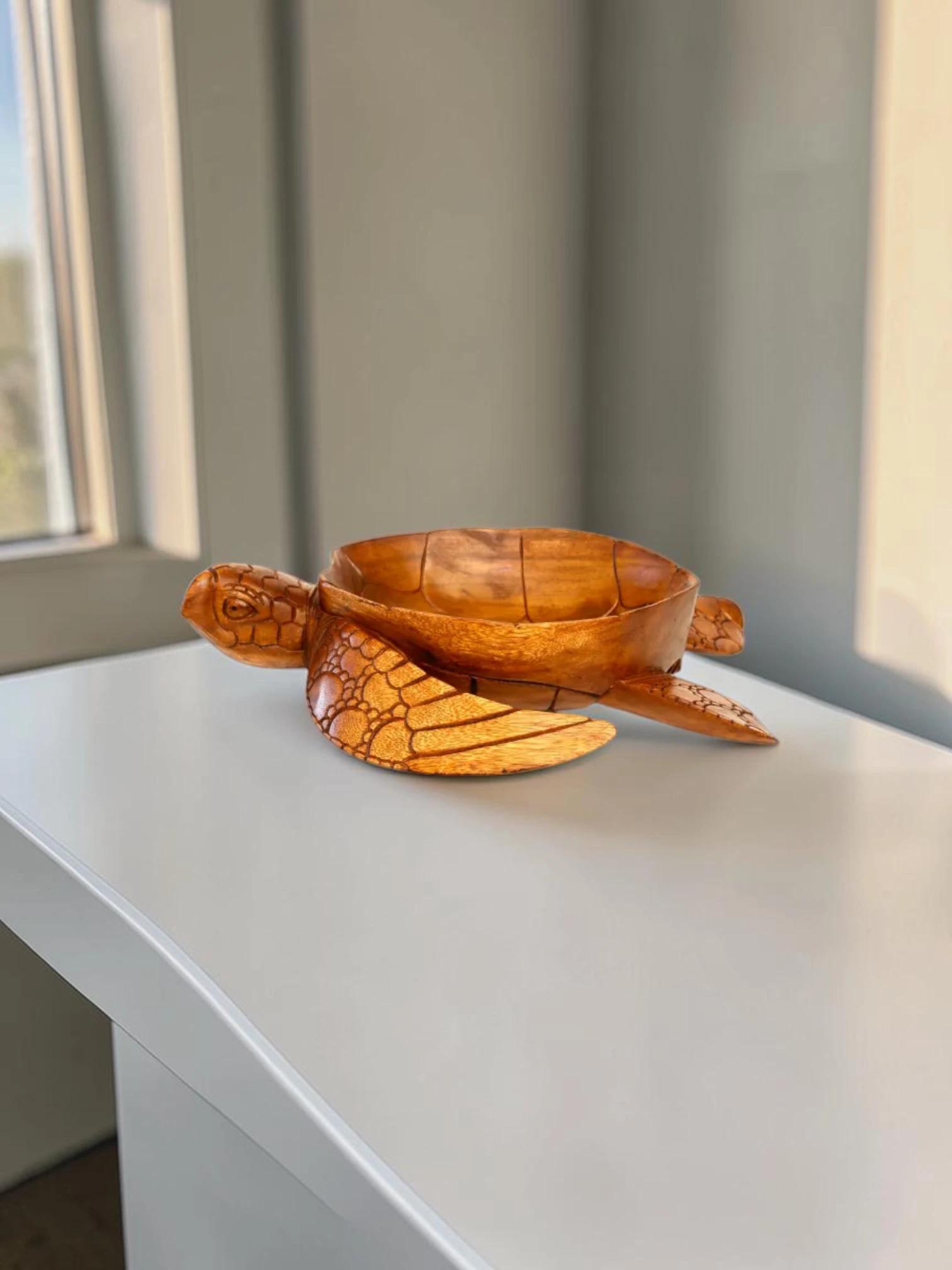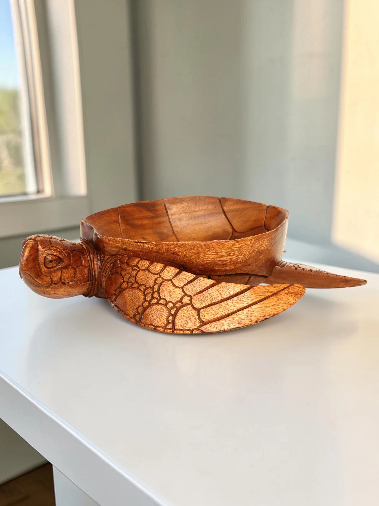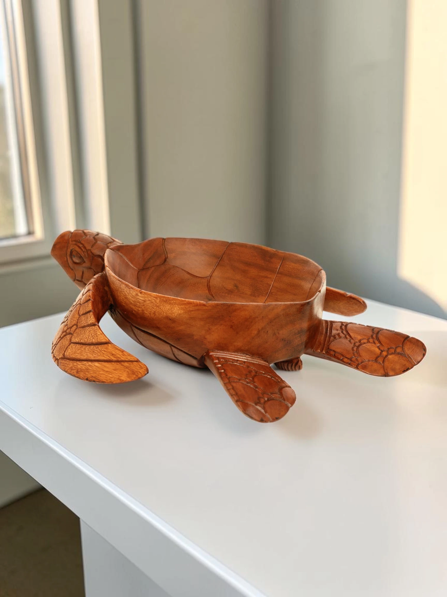 Bring the calming spirit of the ocean into your home with our hand-carved turtle centerpiece. Designed for those who appreciate the beauty of slow living, this bowl serves as a functional piece of art that blends seamlessly into any kitchen, dining room, or living space. Whether holding fresh citrus, decorative orbs, or everyday snacks, its graceful design acts as a conversation starter in any room.