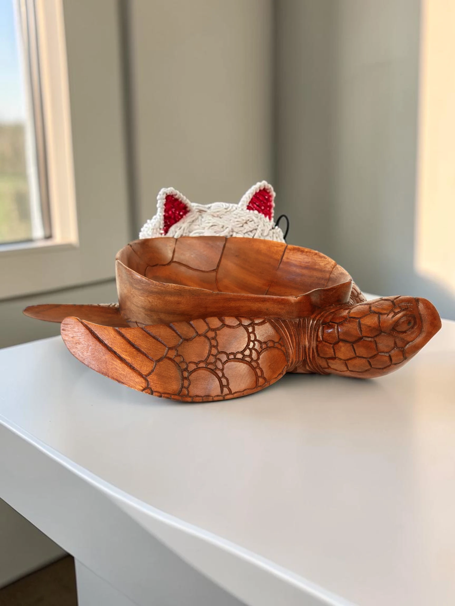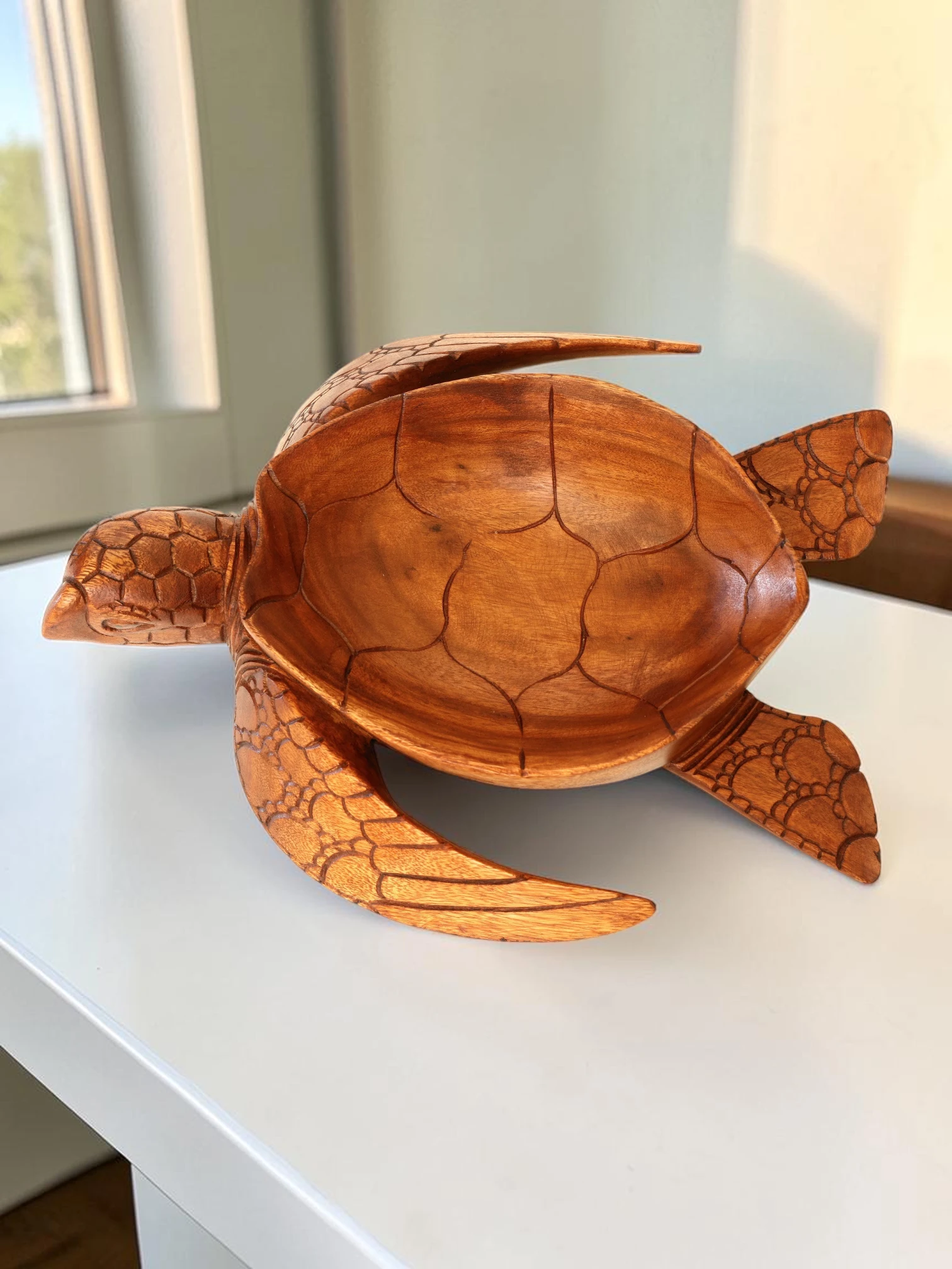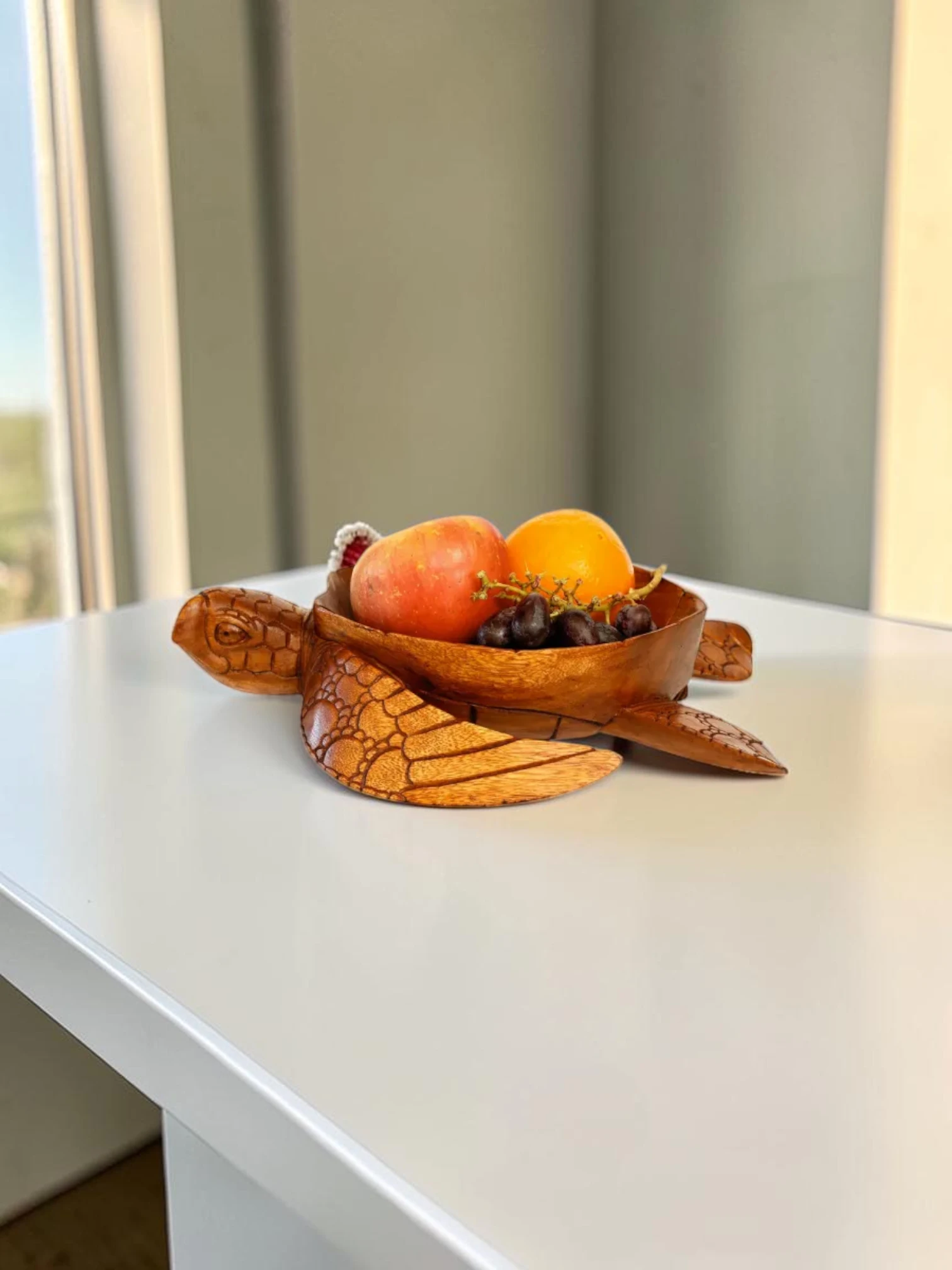 Bring the calming spirit of the ocean into your home with our hand-carved turtle centerpiece. Designed for those who appreciate the beauty of slow living, this bowl serves as a functional piece of art that blends seamlessly into any kitchen, dining room, or living space. Whether holding fresh citrus, decorative orbs, or everyday snacks, its graceful design acts as a conversation starter in any room.