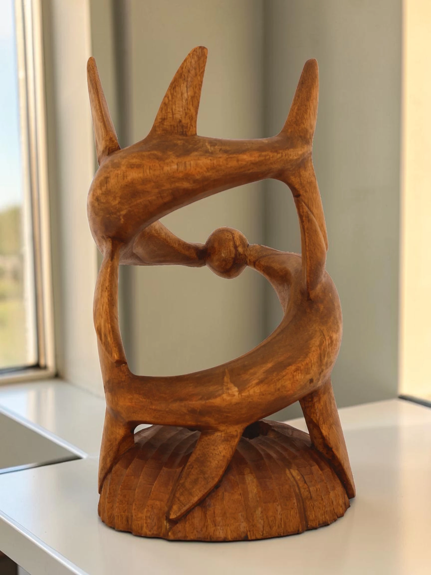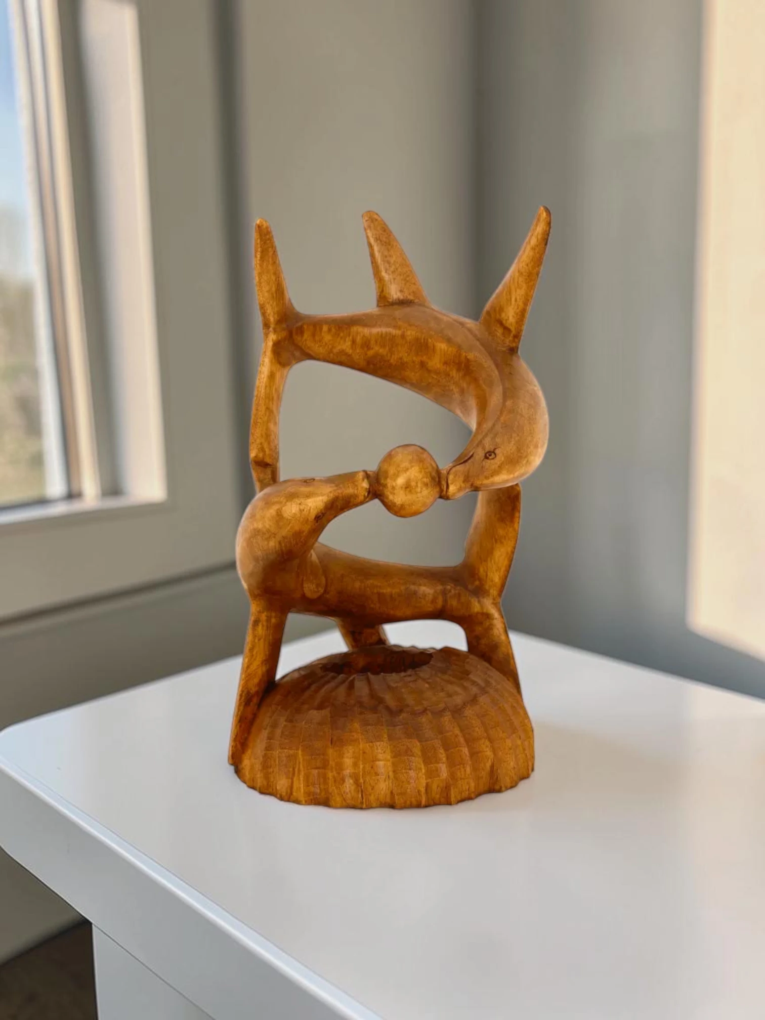 Artisan Wood Decor Hand-Carved Wooden Dolphin Wine Bottle Holder