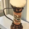 Elevate your home decor with this exquisite, hand-carved double-sided djembe drum. Crafted from premium albizia wood, this piece blends functional musicality with stunning tribal aesthetics. The center is adorned with a vibrant, hand-painted white lizard and accented with red, green, and orange details, making it a captivating conversation starter on…