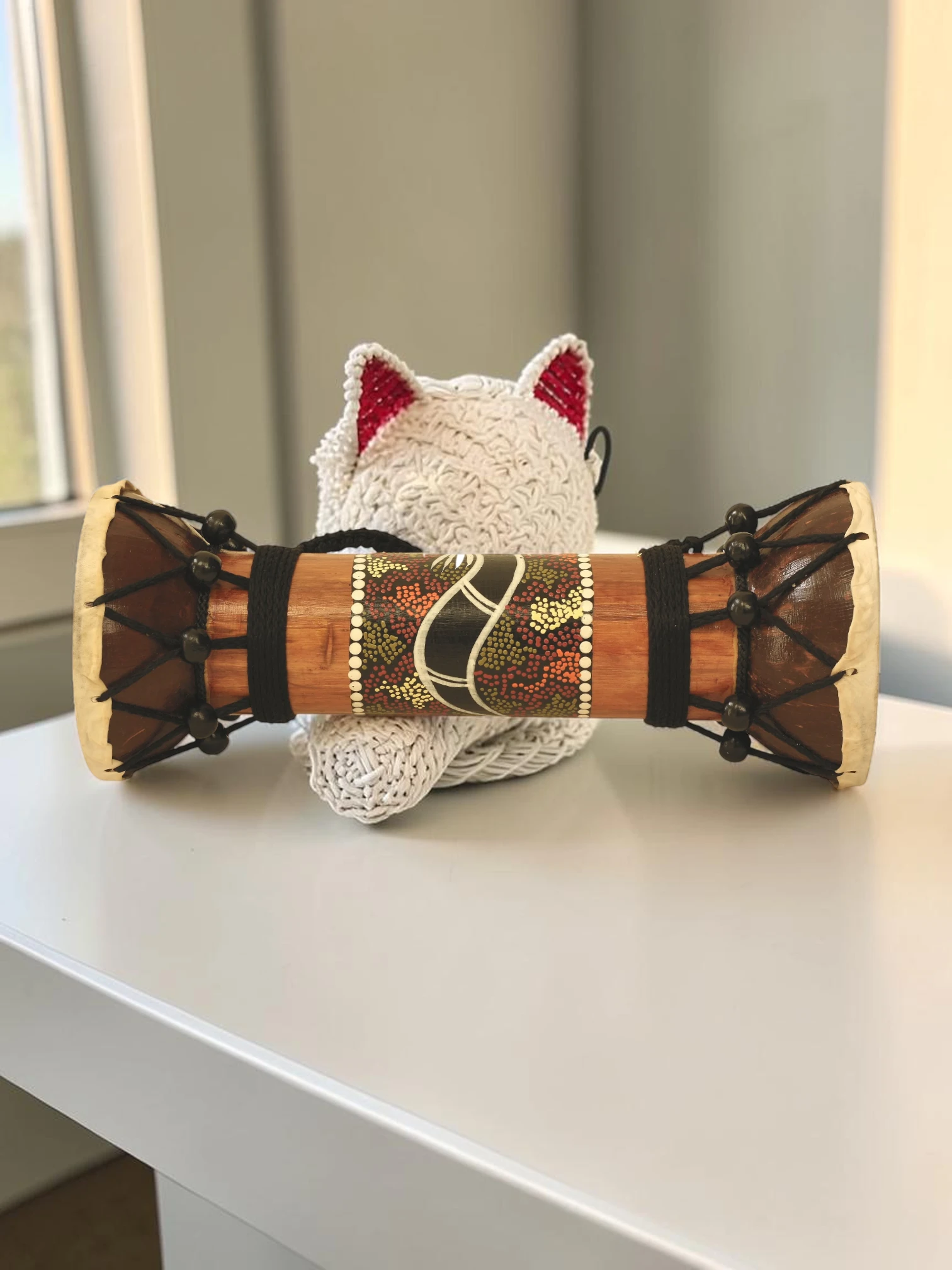 Quality Assurance Note: We are committed to the integrity of our craftsmanship. Each drum is carefully inspected to ensure the wood structure is sound and the drum heads are securely lashed with durable cord. While this drum is designed to be a sturdy and delightful musical instrument for casual play and display, please note that it is a natural wood product; we recommend gentle handling to preserve its structural beauty for years to come.