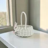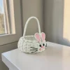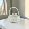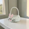 Artisan Wood Decor Hand Woven Rattan Bunny Basket for Flower Girl