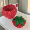 Artisan Wood Decor Hand Woven Strawberry Rattan Storage Basket with Lid