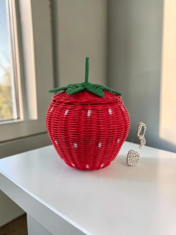 Bring a touch of whimsical charm and organized bliss to your home with our Hand-Woven Strawberry Rattan Storage Basket. Designed to balance playful aesthetics with everyday utility, this delightful piece is more than just a storage bin—it’s a statement of style. Whether you are looking to tidy up a nursery, organize small trinkets on your desk, or create a memorable gift presentation, this basket is crafted to meet your needs.