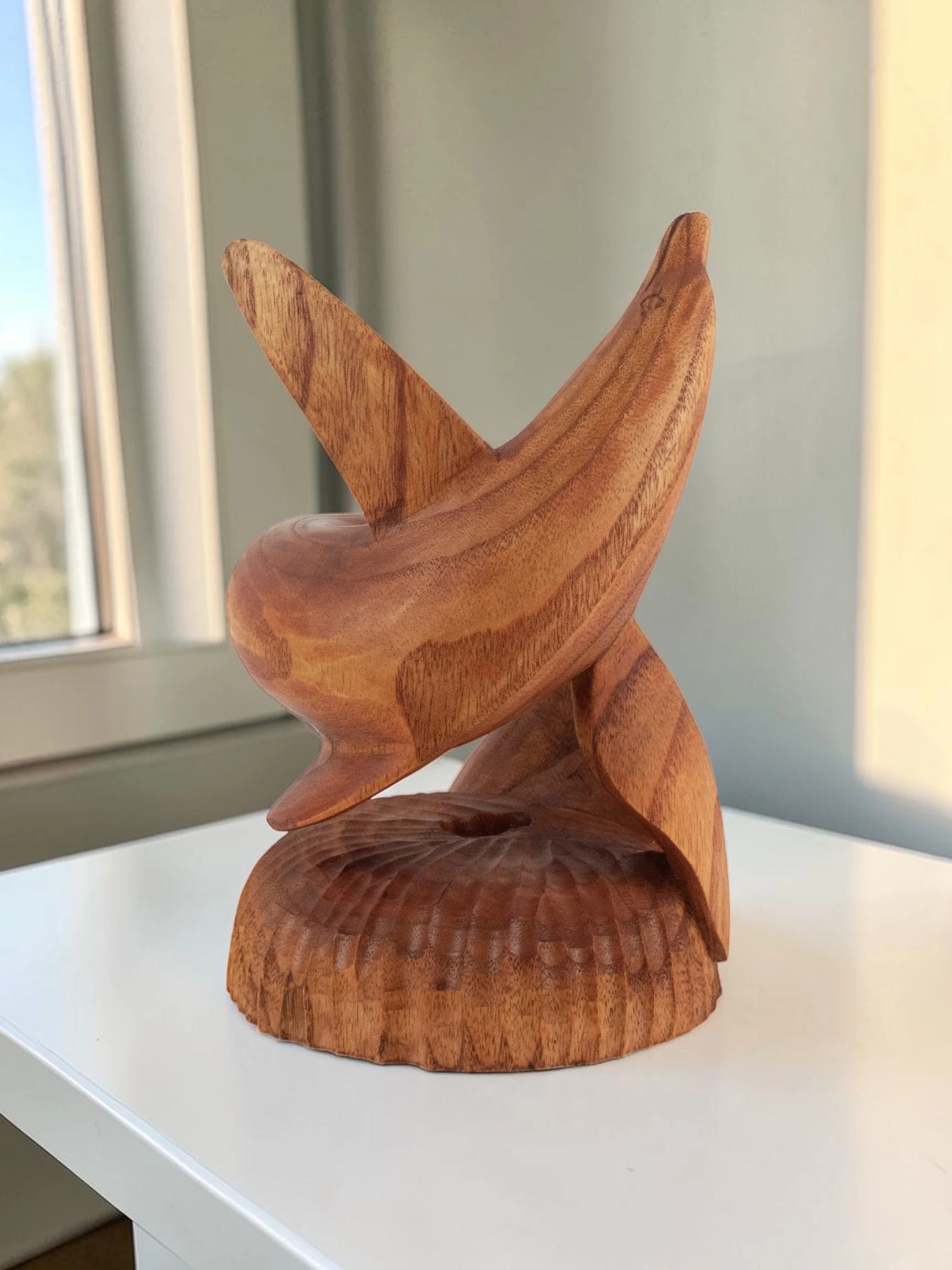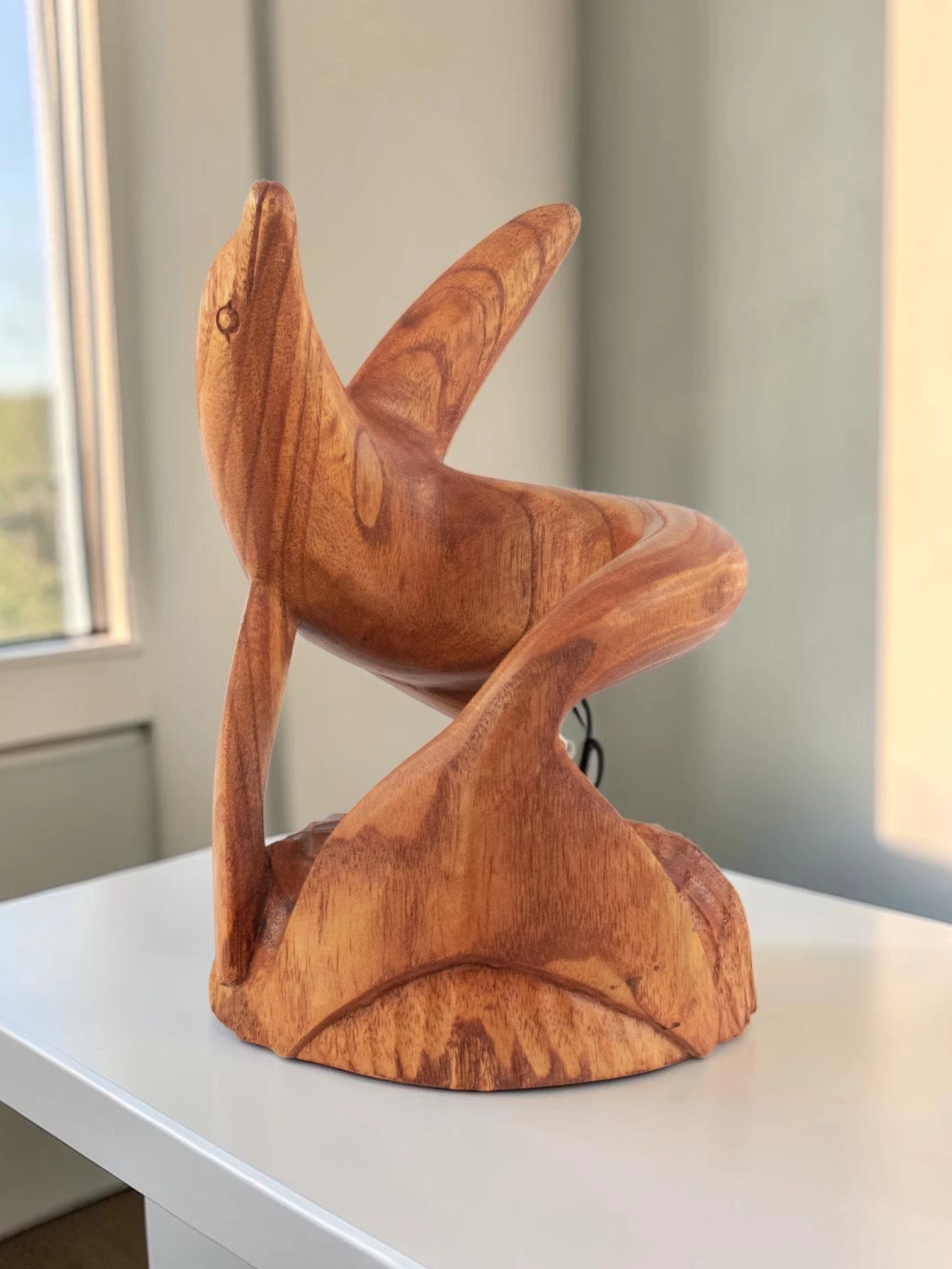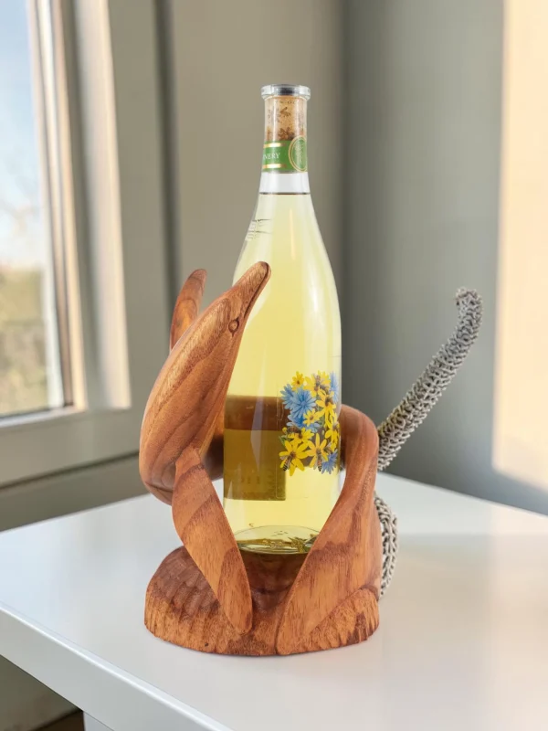 Artisan Wood Decor Handcrafted Wooden Dolphin Wine Bottle Holder