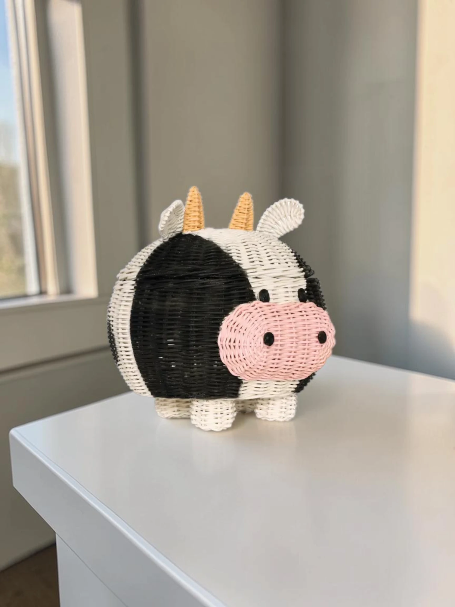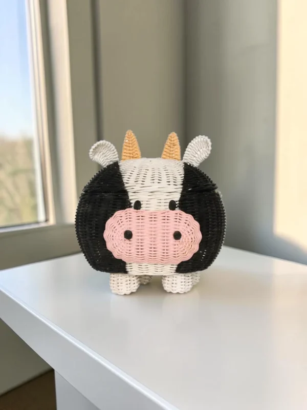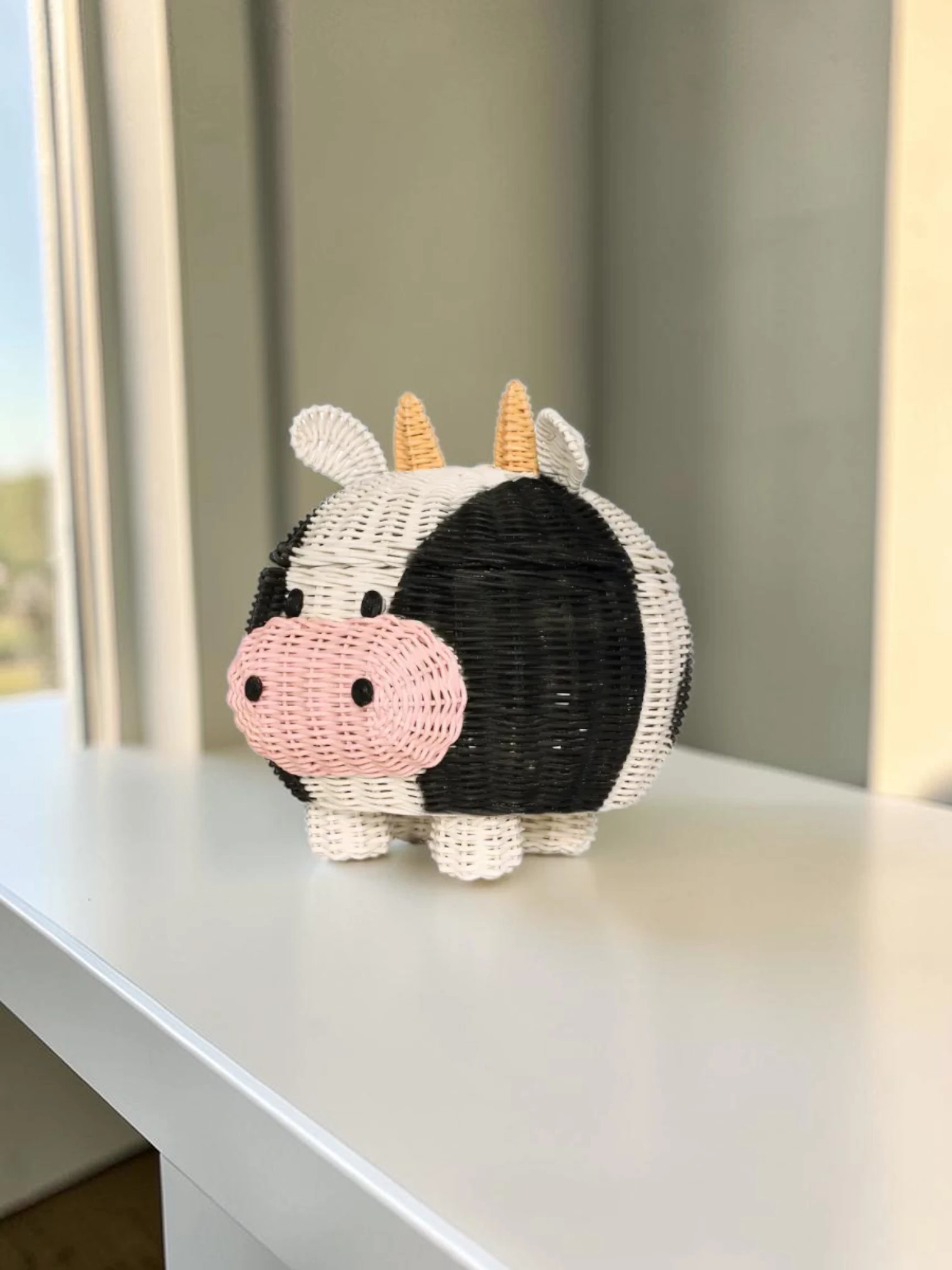 Transform your living space from chaotic to curated with our charming, hand-woven cow storage basket. Designed for those who appreciate the intersection of whimsical decor and functional organization, this basket is crafted from high-quality, natural rattan. Unlike mass-produced plastic alternatives, our basket offers a rich, organic texture that adds warmth and character to any tabletop, shelf, or nursery.