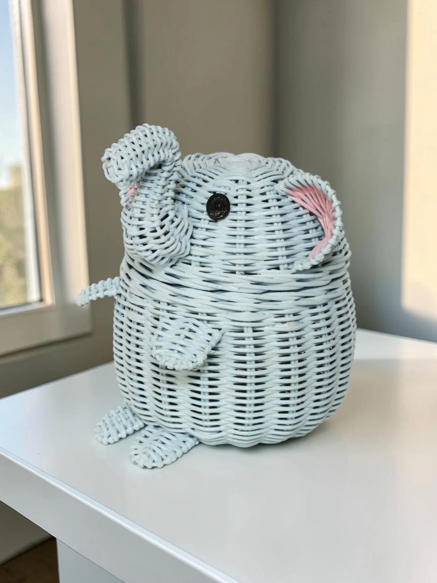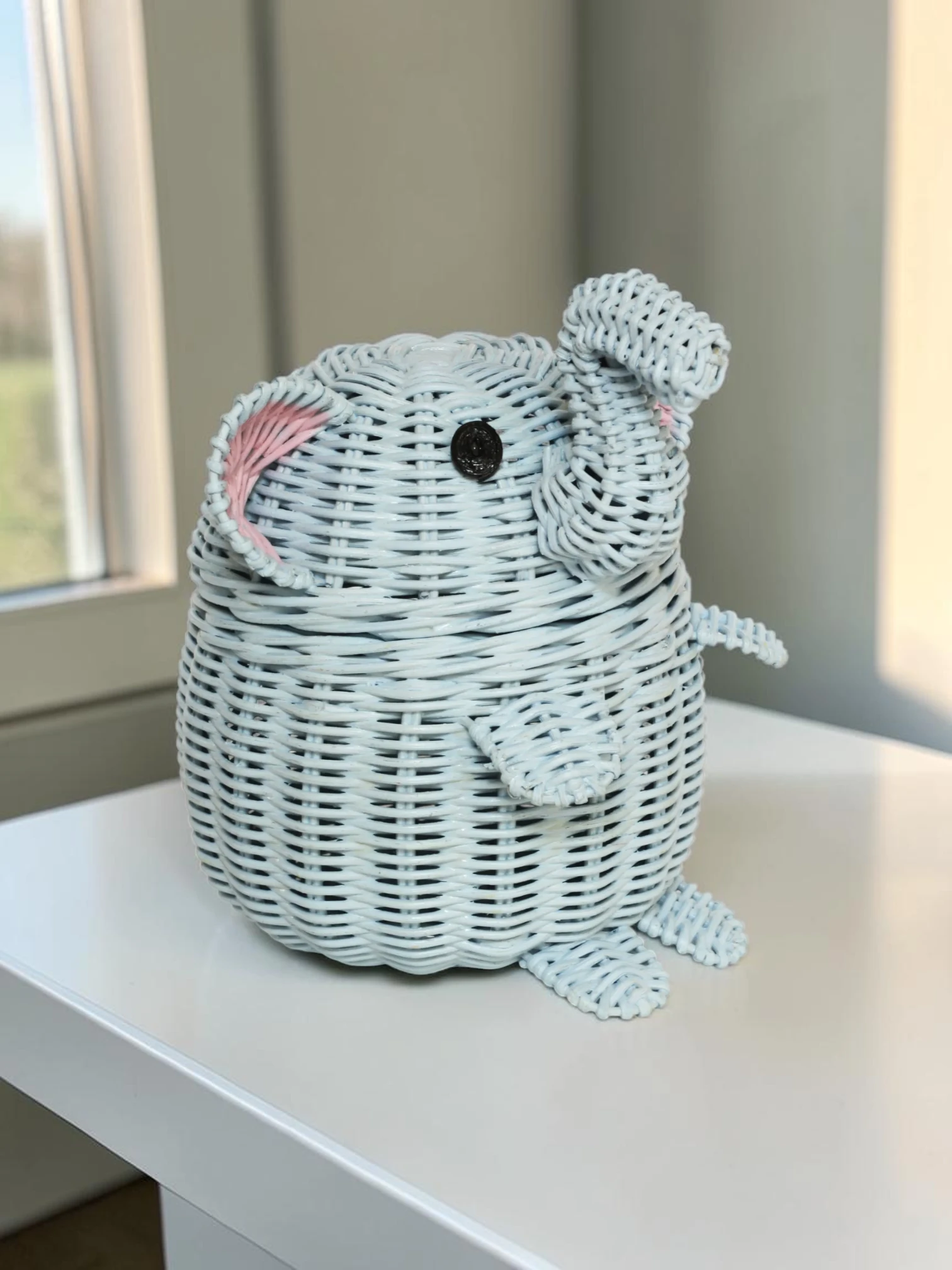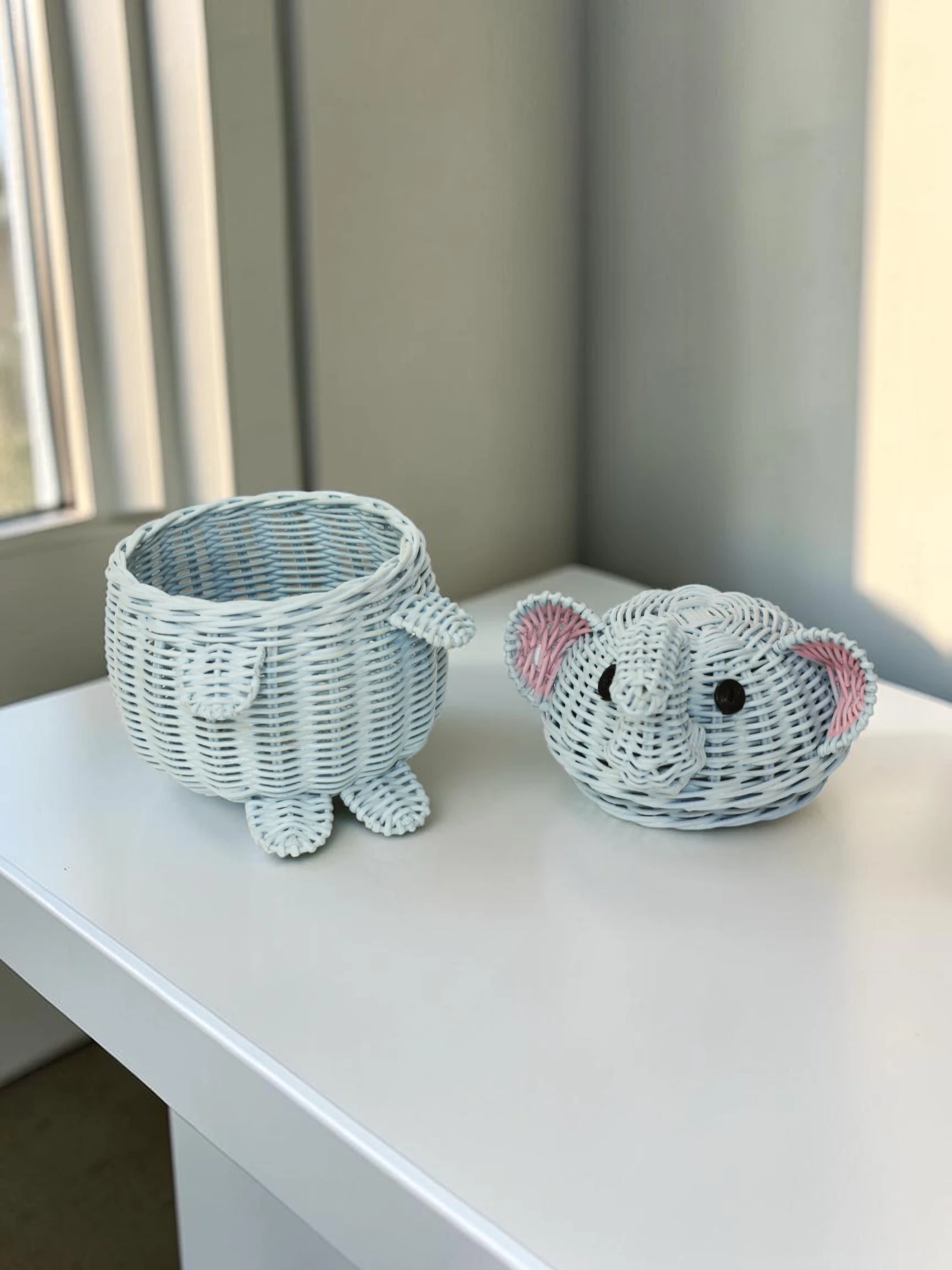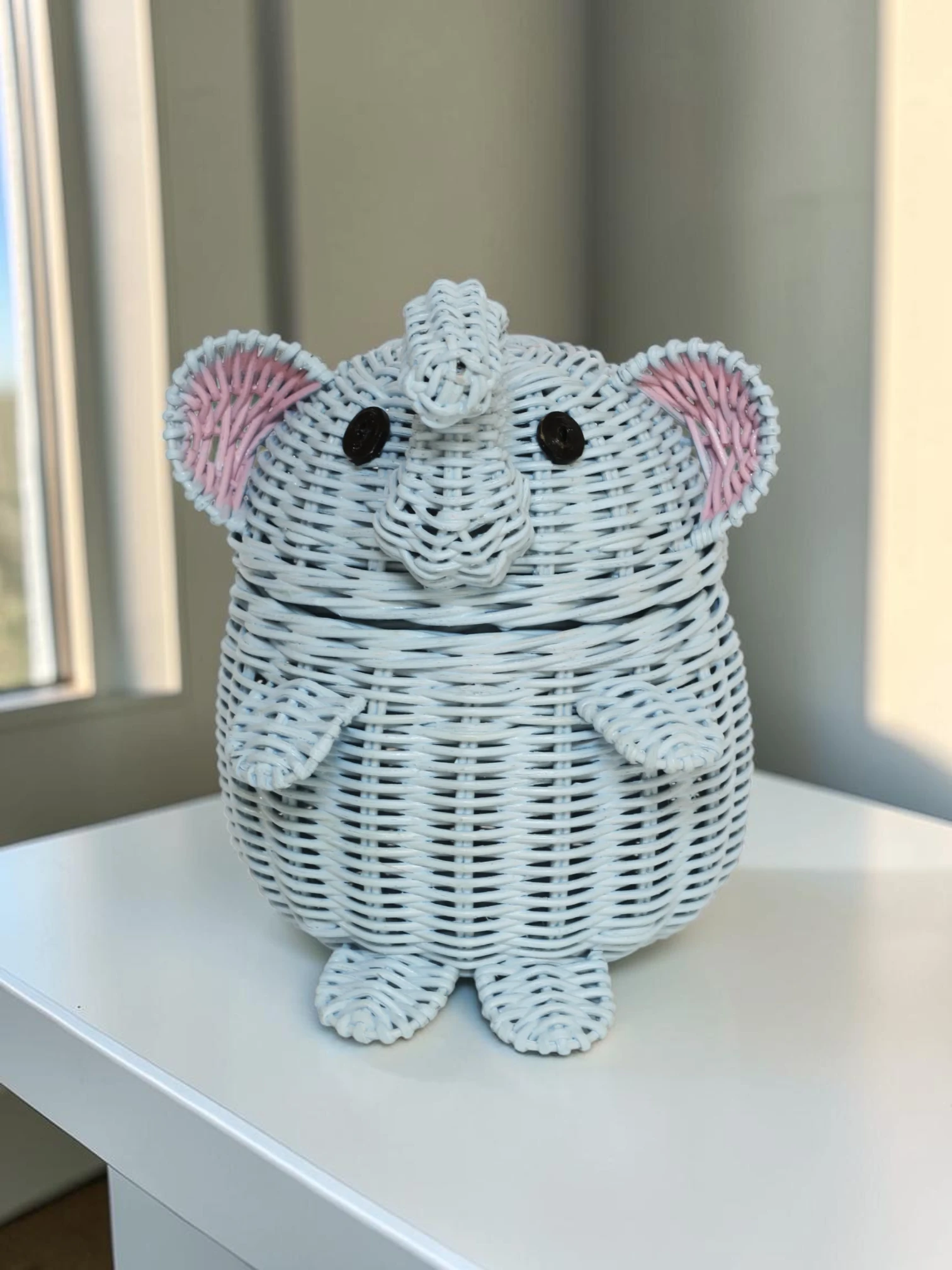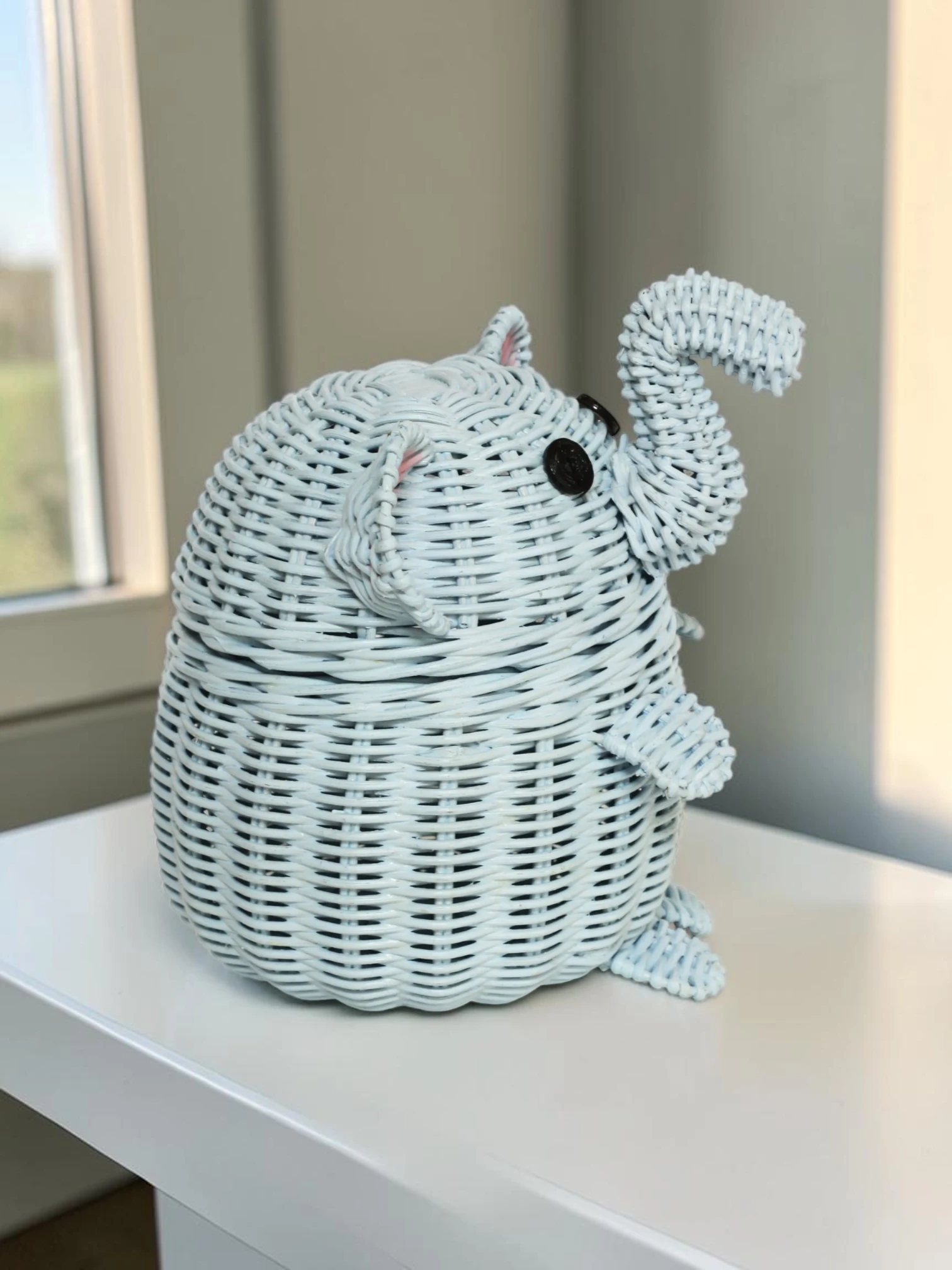 Transform your living space with this beautifully handwoven elephant-shaped rattan basket. More than just a storage container, this piece serves as a sculptural work of art that brings a touch of whimsy and warmth to your home. Designed to blend seamlessly into any nursery, bedroom, or living room, it helps you effortlessly hide away clutter while maintaining a clean, organized, and stylish environment.