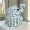 Artisan Wood Decor Handwoven Elephant Rattan Storage Basket with Secure Lid