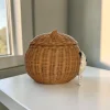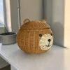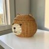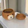 Artisan Wood Decor Handwoven Rattan Bear Storage Basket with Lid