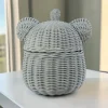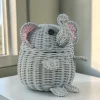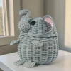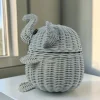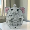 Artisan Wood Decor Handwoven Rattan Elephant Storage Basket with Lid